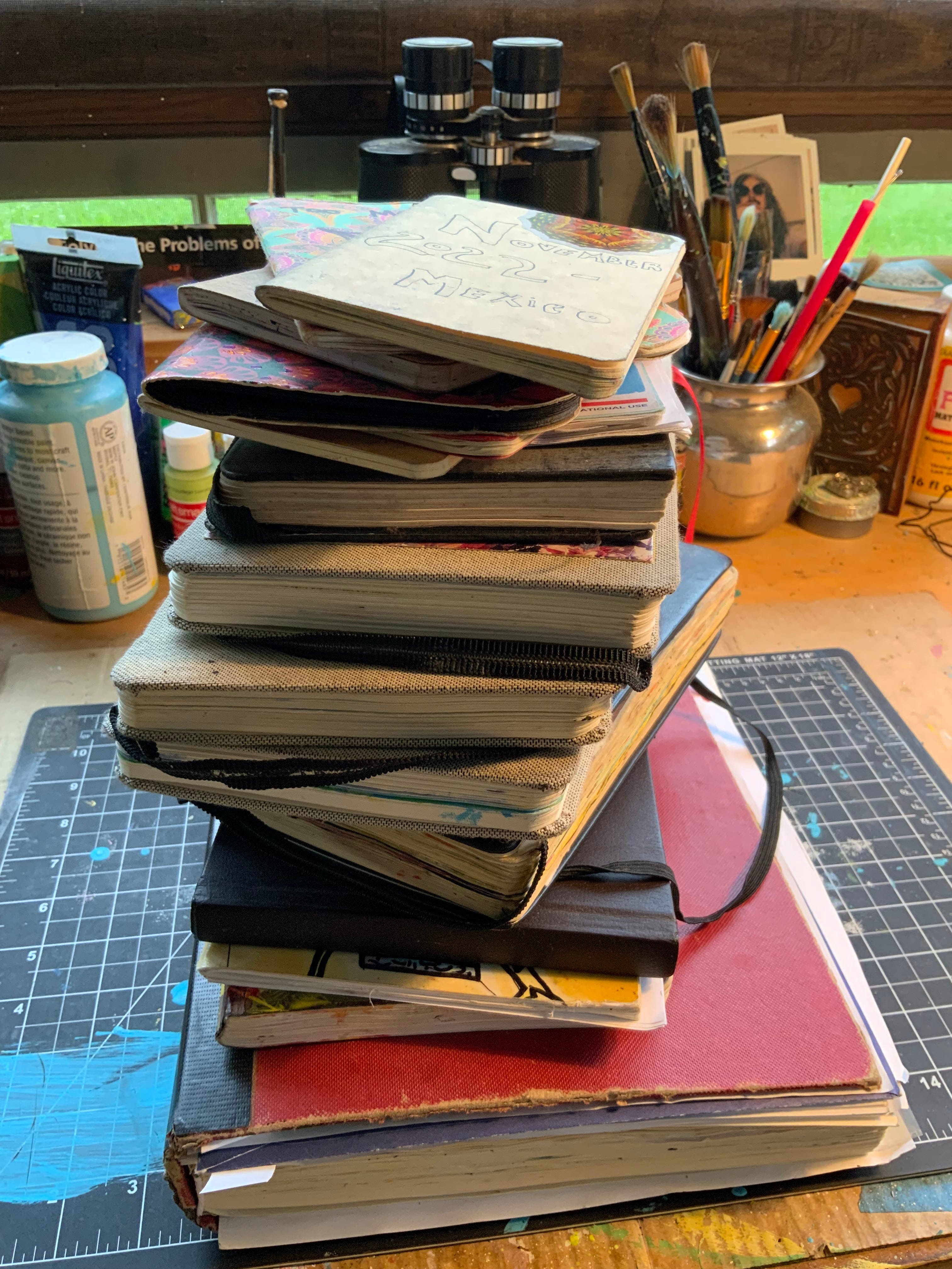 My notebooks are written in a code that only I understand. I don’t worship or cherish every stroke of the pen. All is subject to change, to be edited or crossed out, re-written, or ok, perhaps I do worship and cherish every stroke of the pen. I am just not attached. I have thousands of words written down, but only a fraction ever make it into a song or poem or story.